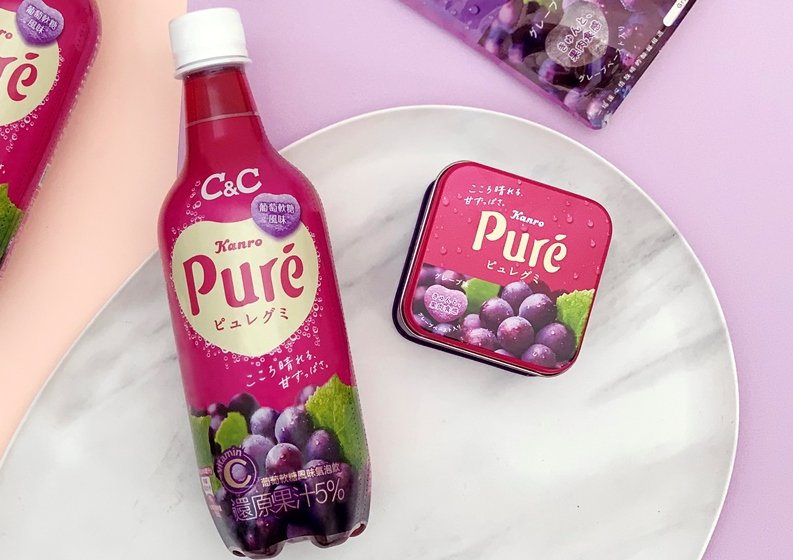 #黑松CnC #鮮果實軟糖 #Pure軟糖 #Kanro #葡萄軟糖氣泡飲