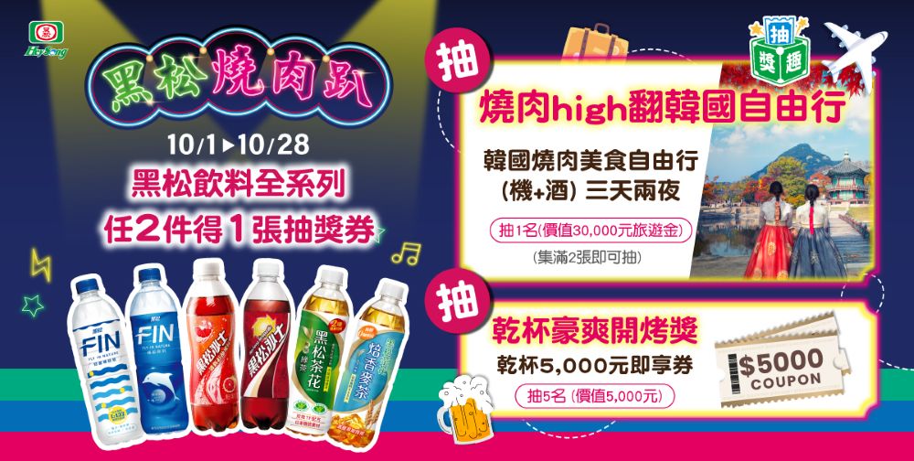 活動二:中秋限定全家「黑松燒肉趴」 韓國三天兩夜之旅、乾杯五千元即享券等你抽